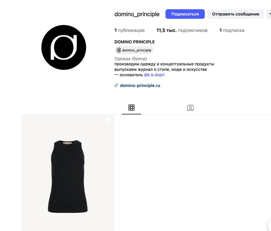 Скріншот із сторінки російського магазину Шухніна «Domino principle»